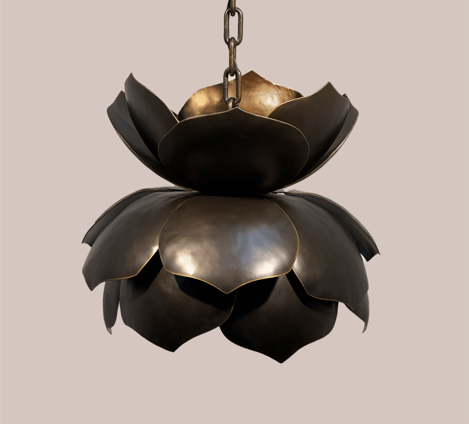 2038-L Polished Steel & Leather Theo Hanging Fixture